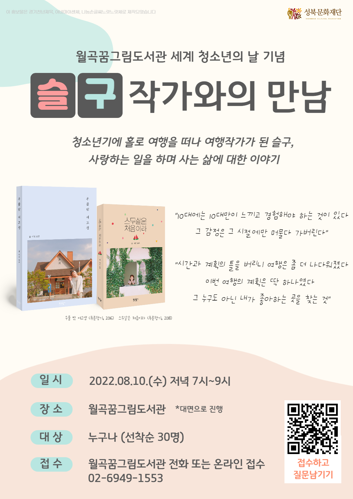 | [성북구립도서관] 노인의 이야기가 도서관이다 | 2022 이야기청 성북 (0) | 2022.08.09 |