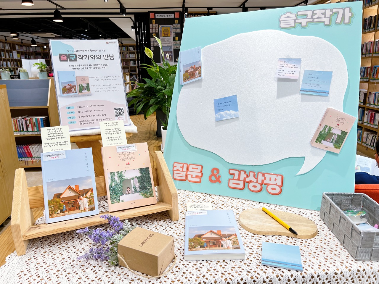 지금 도서관에 오시면 슬구 작가 책을 보실 수 있습니다