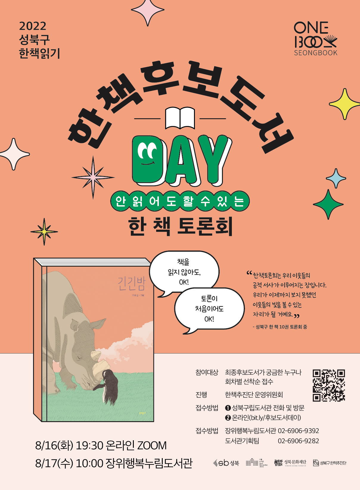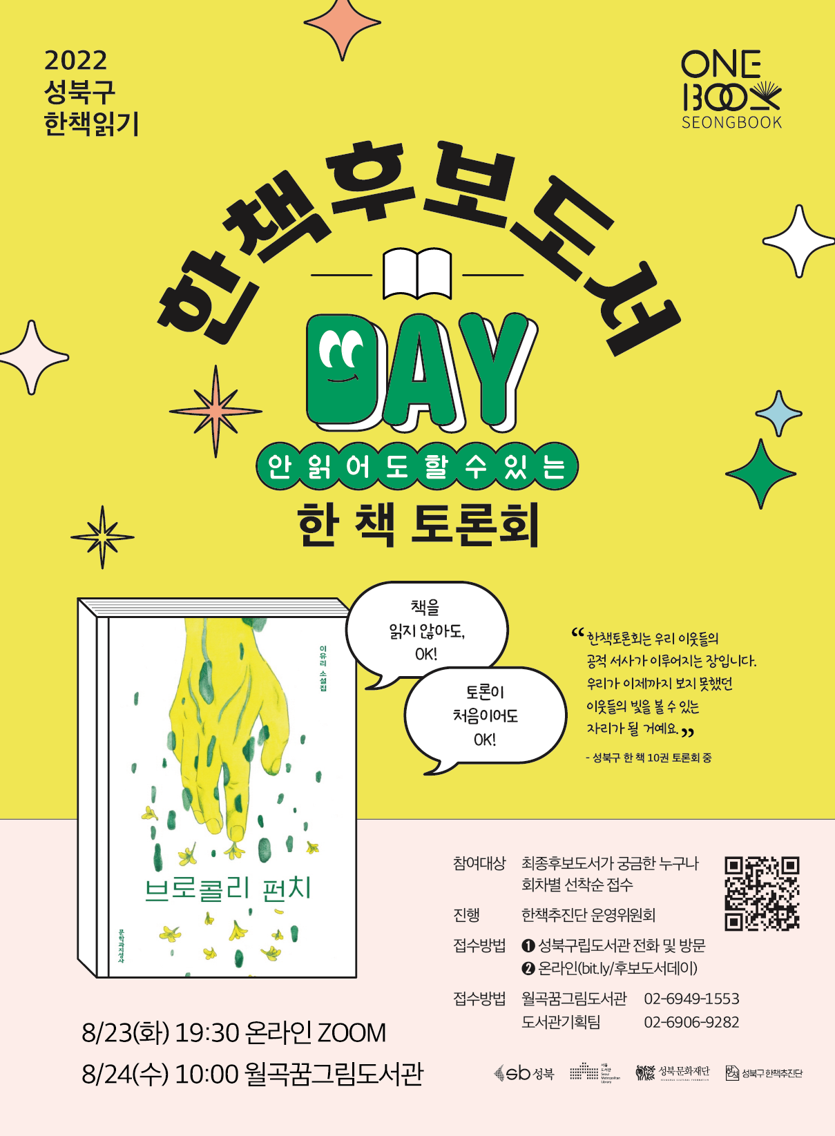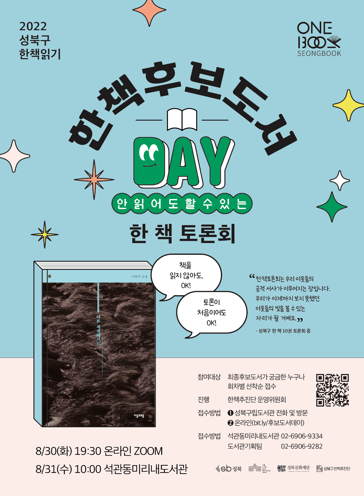 | 2022 올해의 성북구 한 책 최종선정토론회 ✨ 접수 / 최종선정투표 🎉🎉 시작 ! (0) | 2022.09.15 |