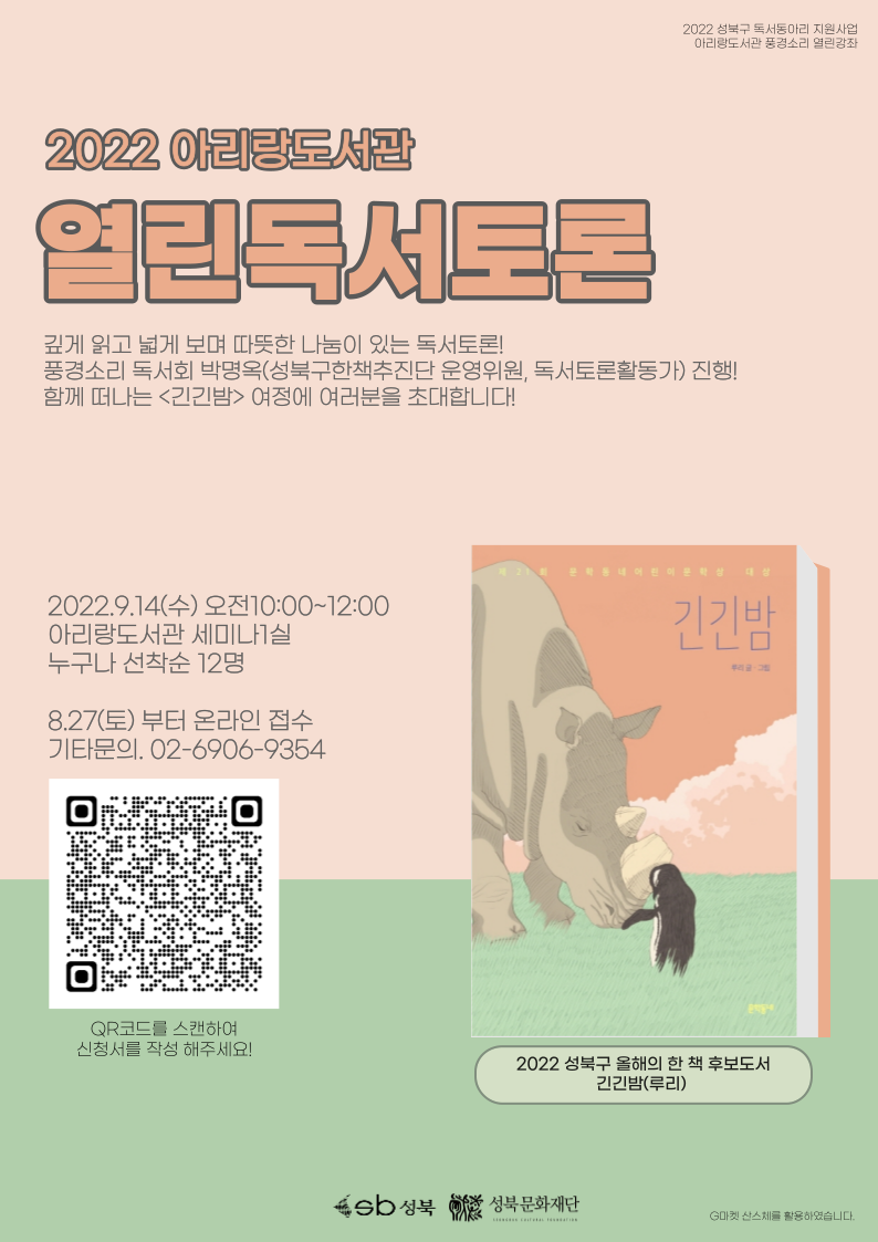 2022 아리랑도서관 독서회 풍경소리와 함께하는 열린독서토론 안내