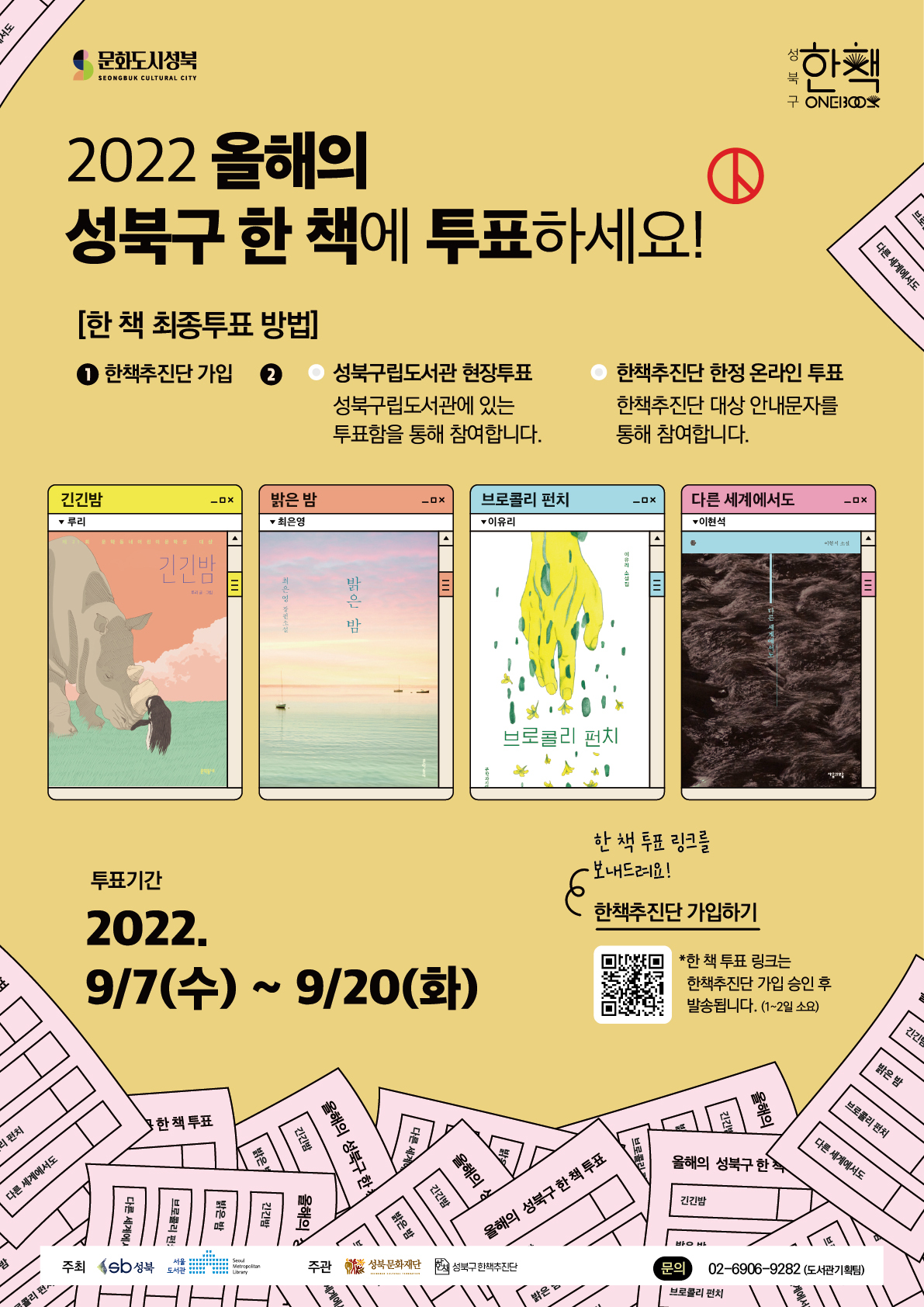 | 2022 올해의 성북구 한 책 최종 선정 투표 시작! (9/7-9/20) |