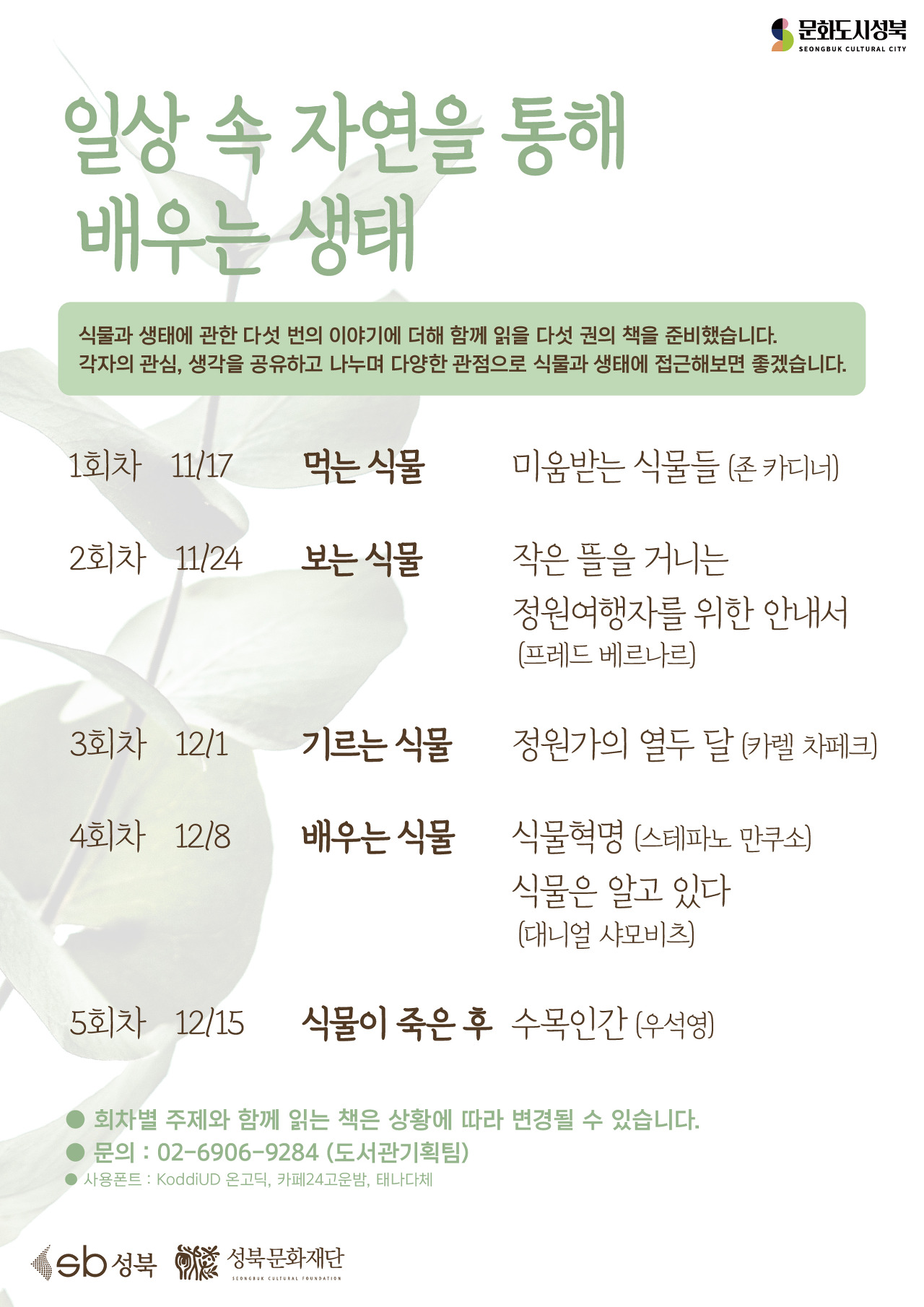 식물과 생태에 관한 다섯 번의 이야기를 나눕니다.