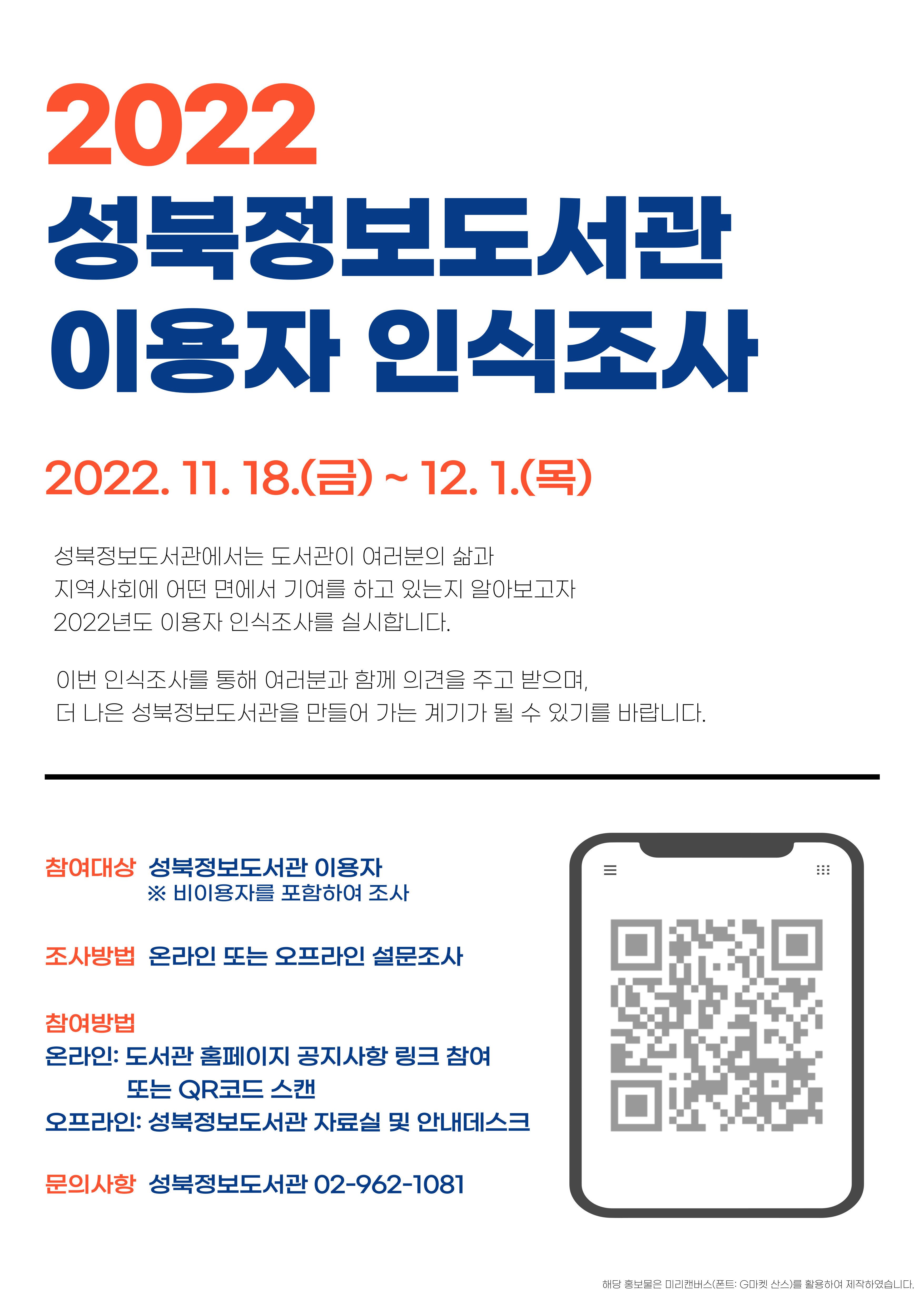 참여대상: 성북정보도서관 이용자 (비이용자를 포함하여 조사)