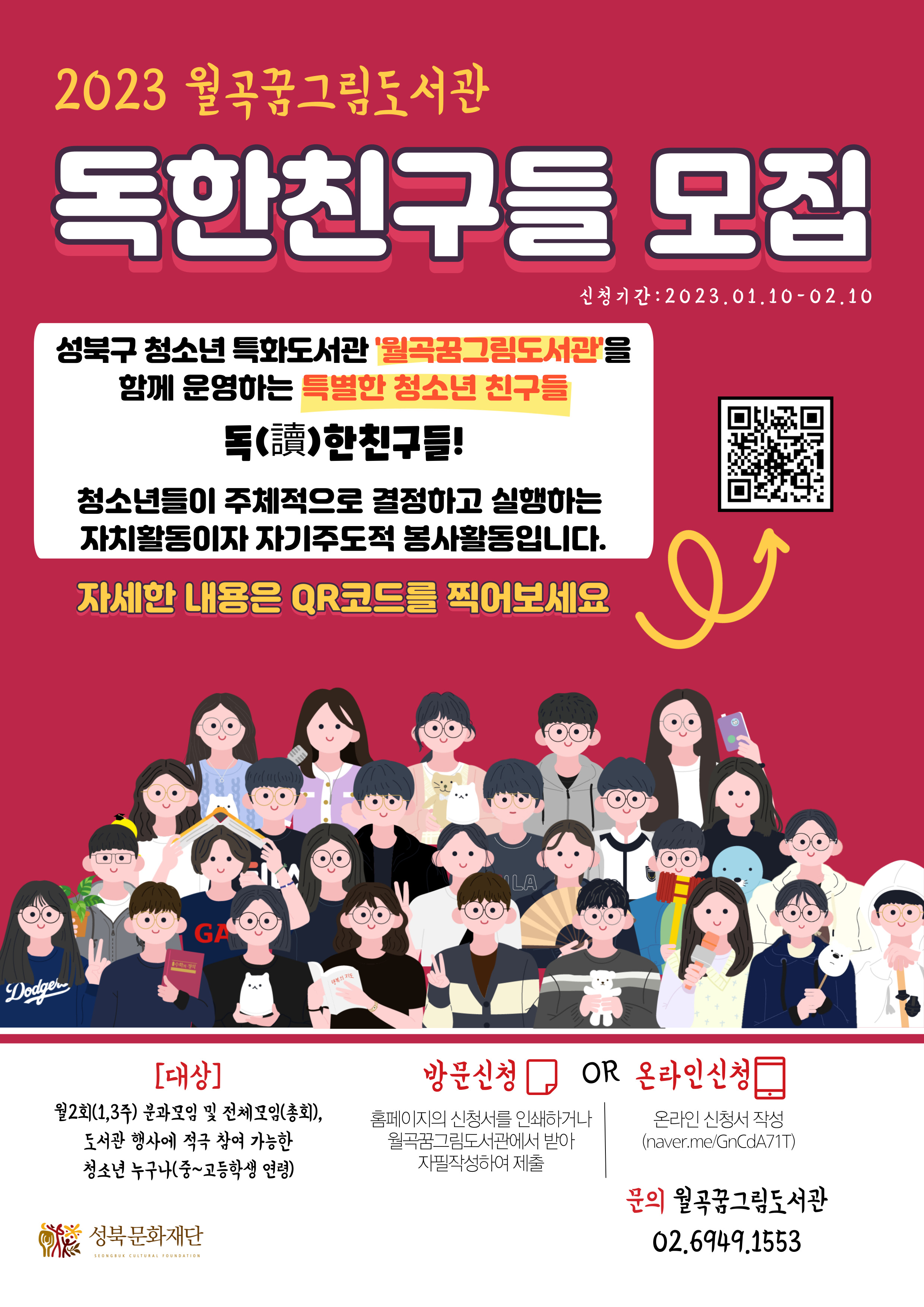 | [월곡꿈그림도서관] 청소년 북클럽 <청개구리 독서회 시즌3> 회원 모집 (0) | 2023.01.02 |