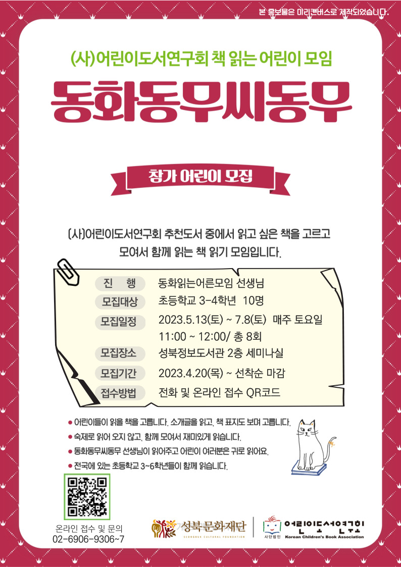 <동화동무씨동무>에서 참가 어린이를 모집합니다💖💖