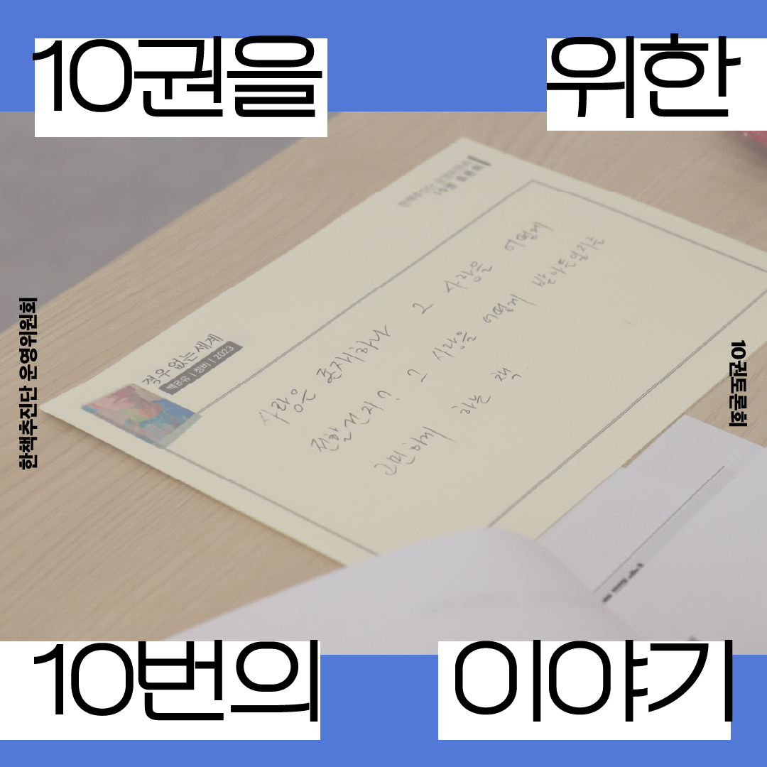 | 10권을 위한 ――― 10번의 이야기 📚 다섯번째, 재능의 불시착 | 한책추진단 운영위원회 10권토론회 후기 (0) | 2023.06.05 |