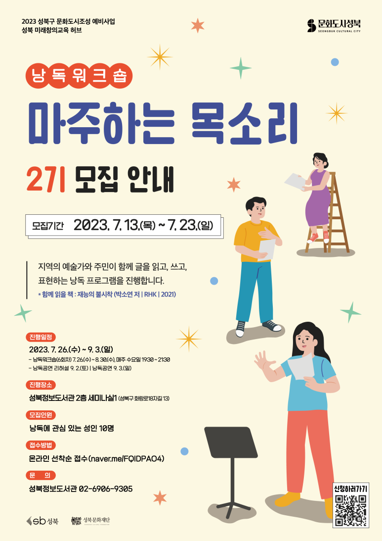 | [성북정보도서관] 윤성은 작가와의 만남(9/23 10:30) (0) | 2023.09.11 |