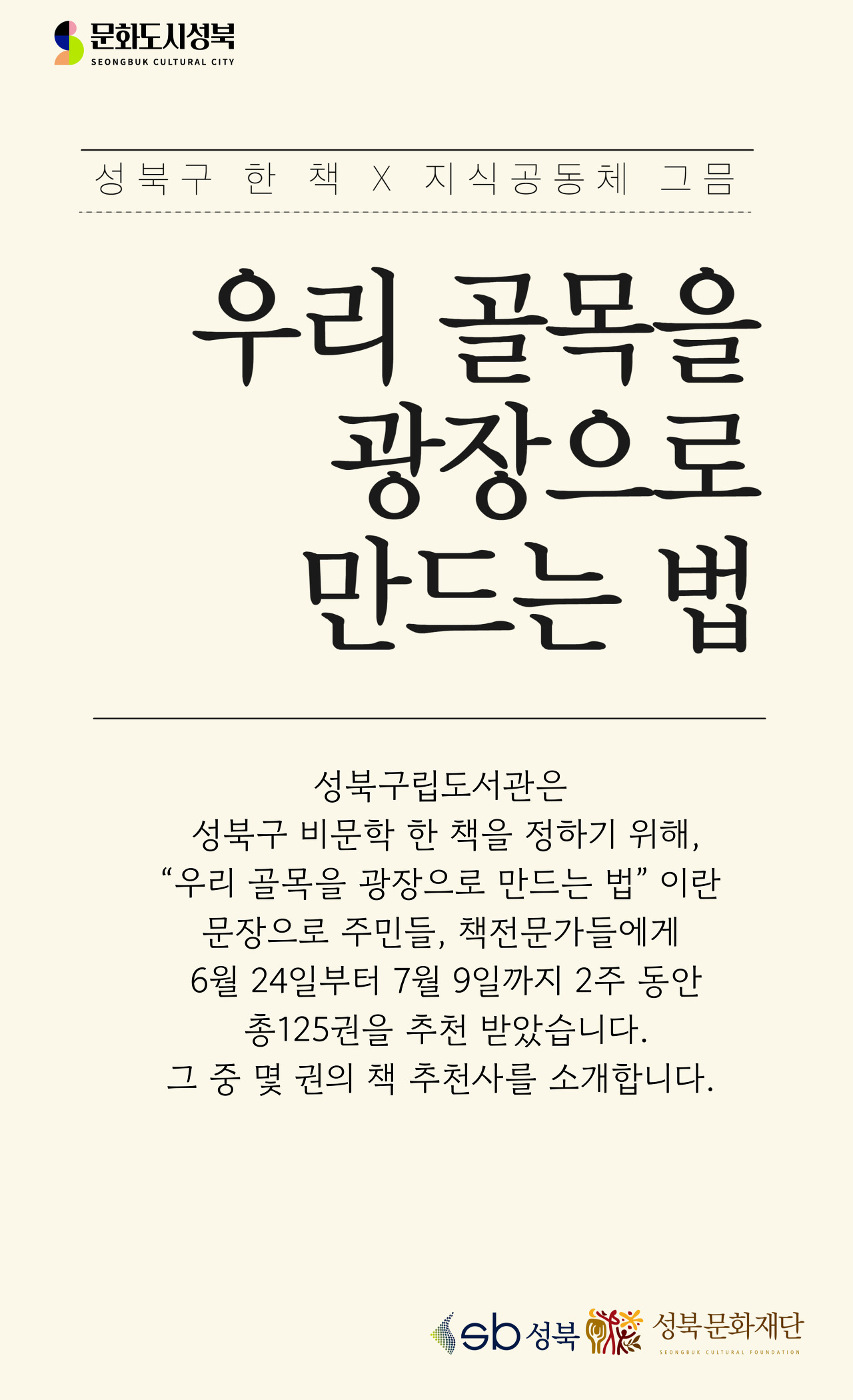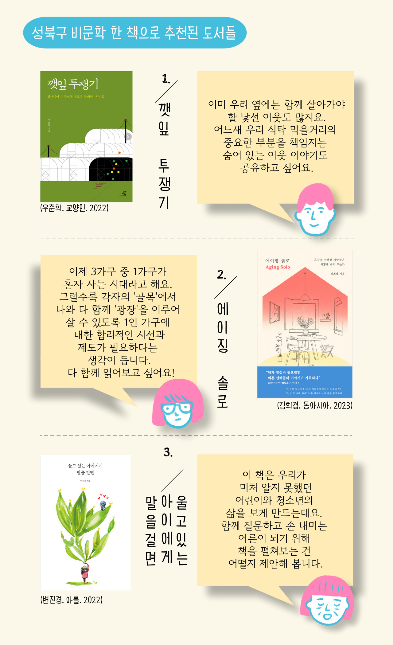 | 올해의 성북구 비문학 한 책을 추천해 주세요!! 🌙 (0) | 2023.09.11 |
