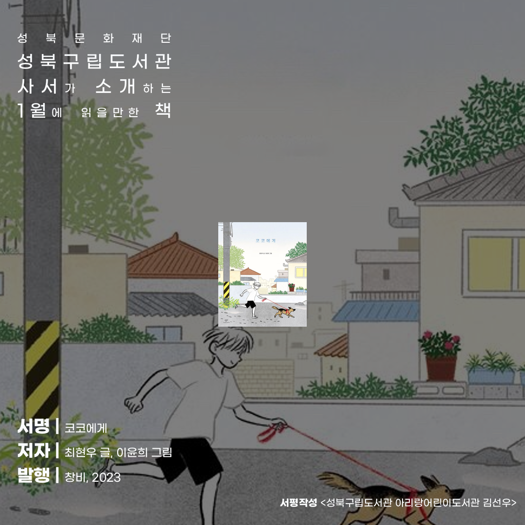 최현우 시인이 한 글자 한 글자 꾹꾹 눌러 담은 강아지 코코를 향한 마음과, 이윤희 일러스트레이터가 그려낸 코코와 소년의 반짝이는 순간순간이 애틋하고 또 애틋하다.