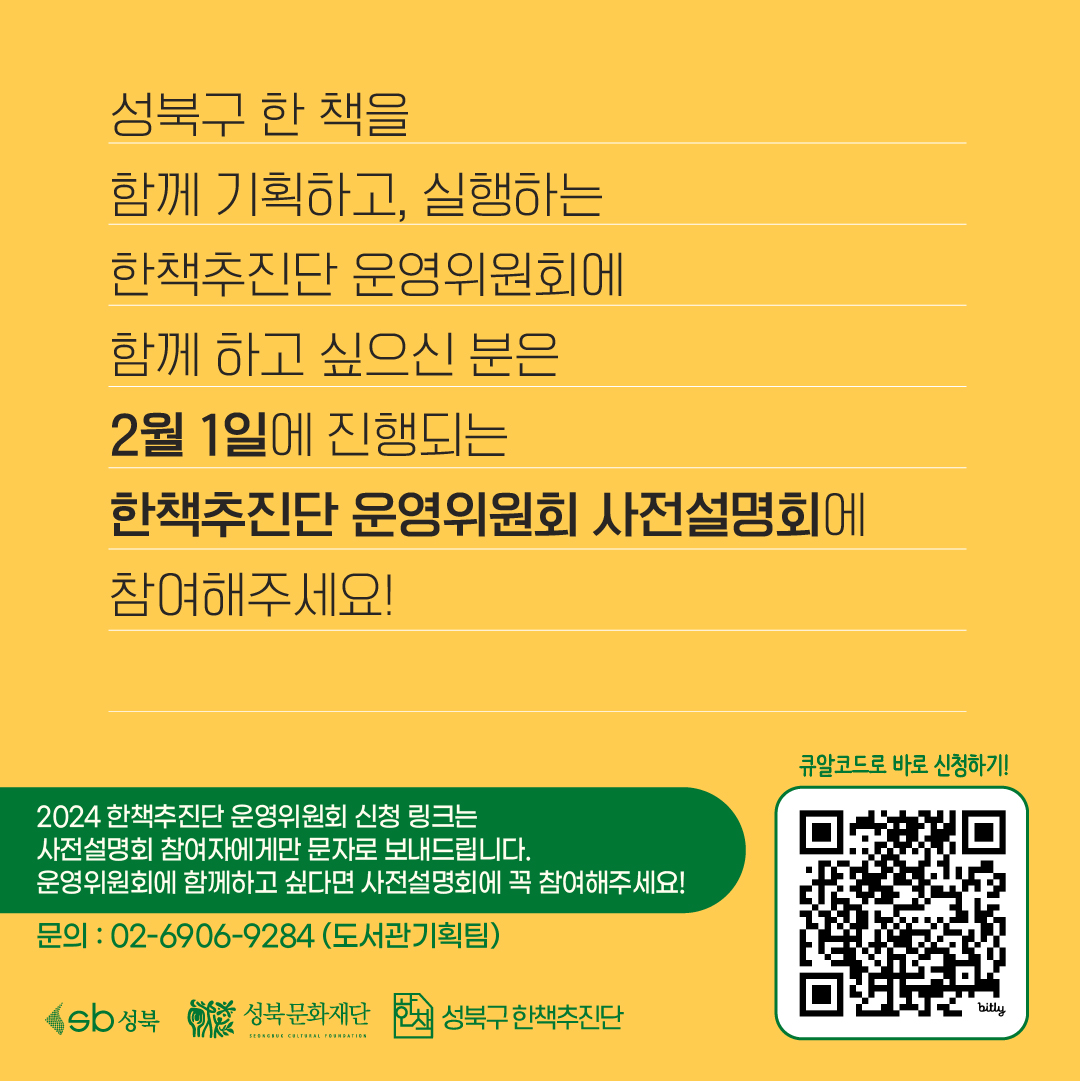 | [2024 성북구 한 책 읽기] 2024 한책추진단 운영위원회 시작합니다! ☺ | 한책추진단 운영위원회 첫 만남의 날 후기 (0) | 2024.02.27 |