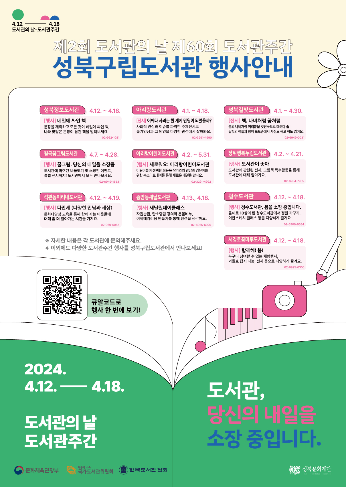 성북구립도서관 📚 제60회 도서관주간(4.12.~4.18.) | 제2회 도서관의 날 (4.12.)