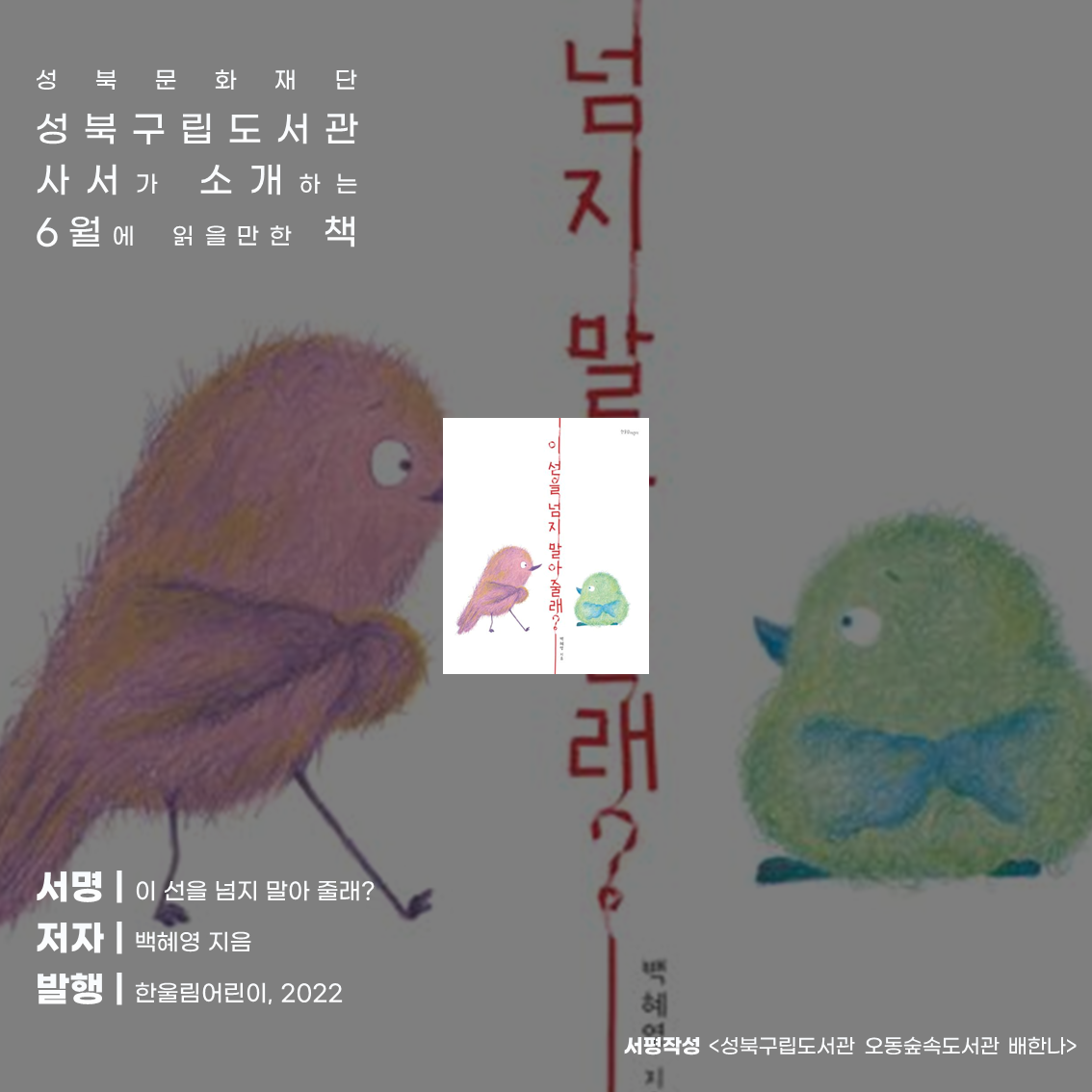 | [2024년 5월 서평] 성북문화재단 성북구립도서관 사서들의 서평 | 사서의 마음을 담은 서재 (0) | 2024.04.29 |