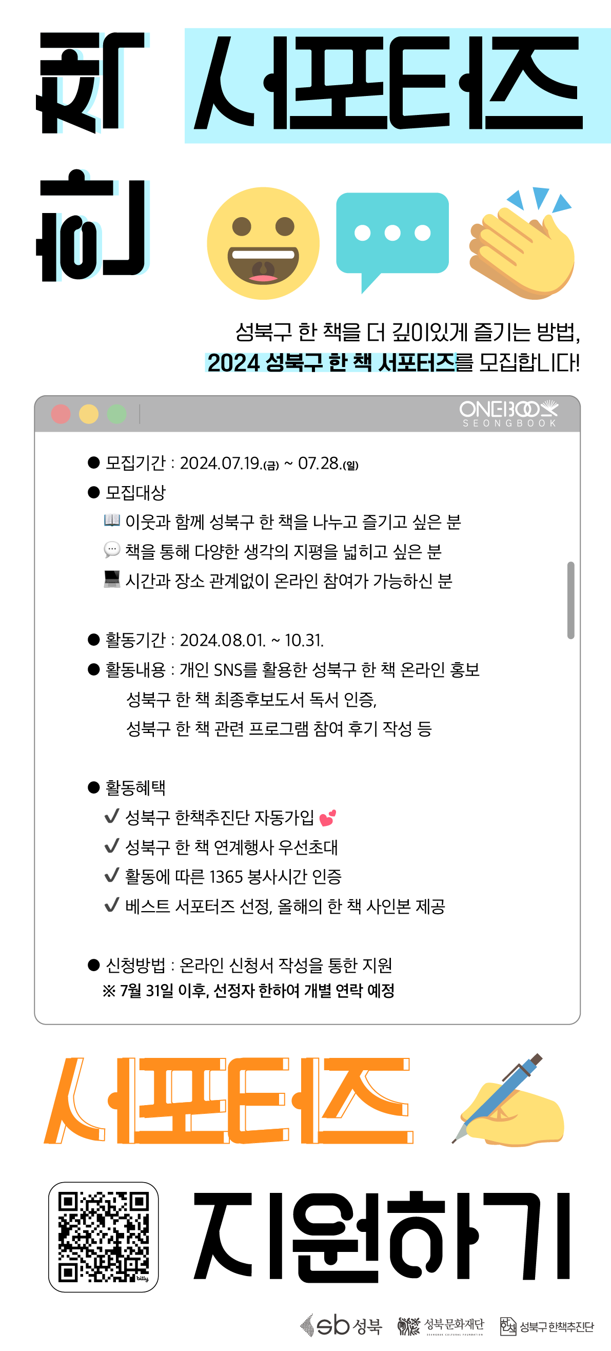 2024 성북구 한 책 서포터즈 🌟 대 모 집 🌟