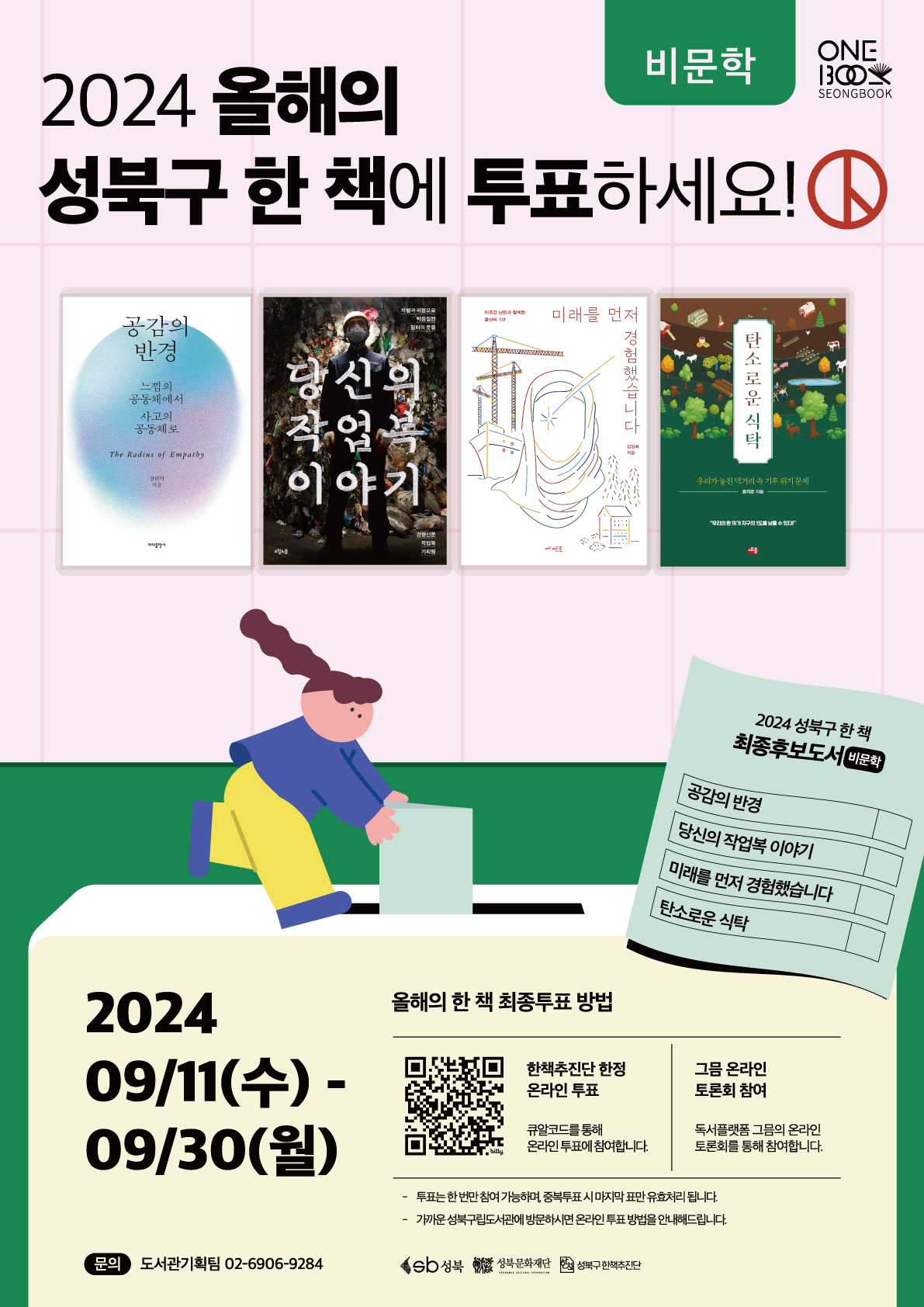 | 2024 성북구 한 책 최종후보도서(4권)가 선정되었습니다! 👏😉 (0) | 2024.06.21 |