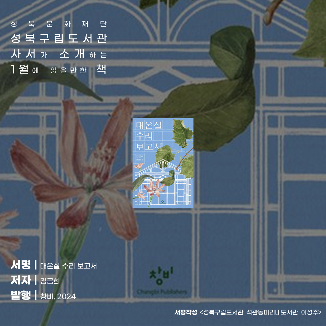 | [2025년 2월 서평] 성북문화재단 성북구립도서관 사서들의 서평 | 사서의 마음을 담은 서재 (0) | 2025.01.22 |
