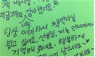 도서관에서 만난 어린들을 언제까지나 모두 기억하고 싶지만, 아무래도 조금 욕심 같고요. 제가 독서를 더욱 열심히 하여(?) 진정한 책박사로 거듭나면 어린이 세계에서 만나기로 해요. 우리!