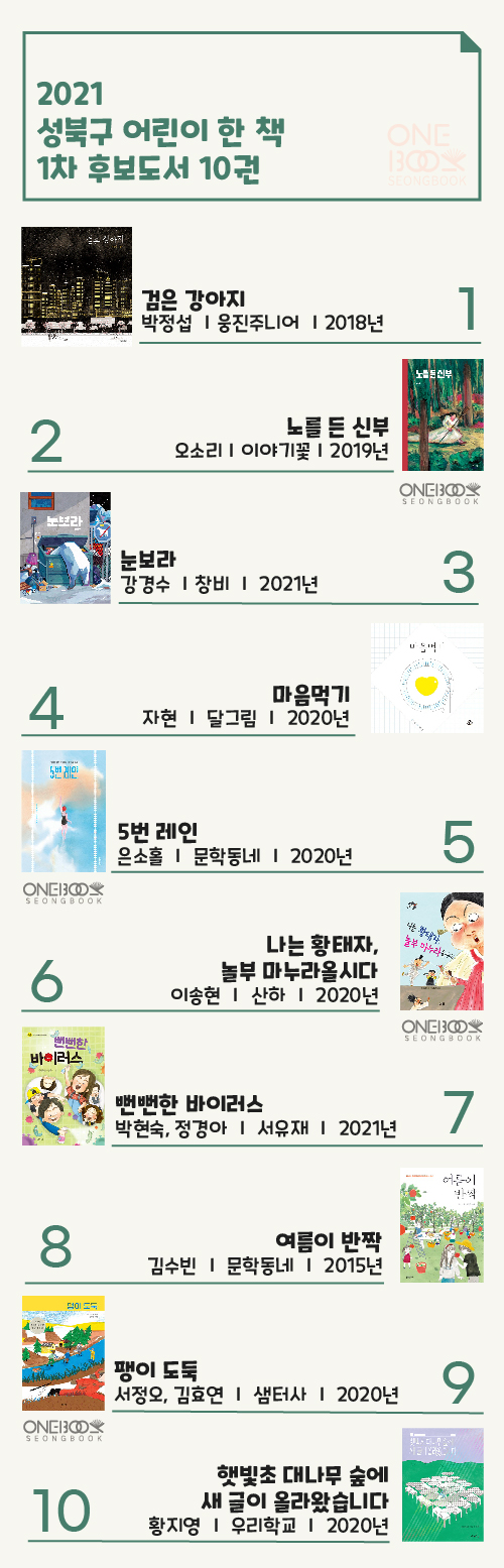 성북구 어린이 한 책 1차 후보도서 10권을 소개합니다!
