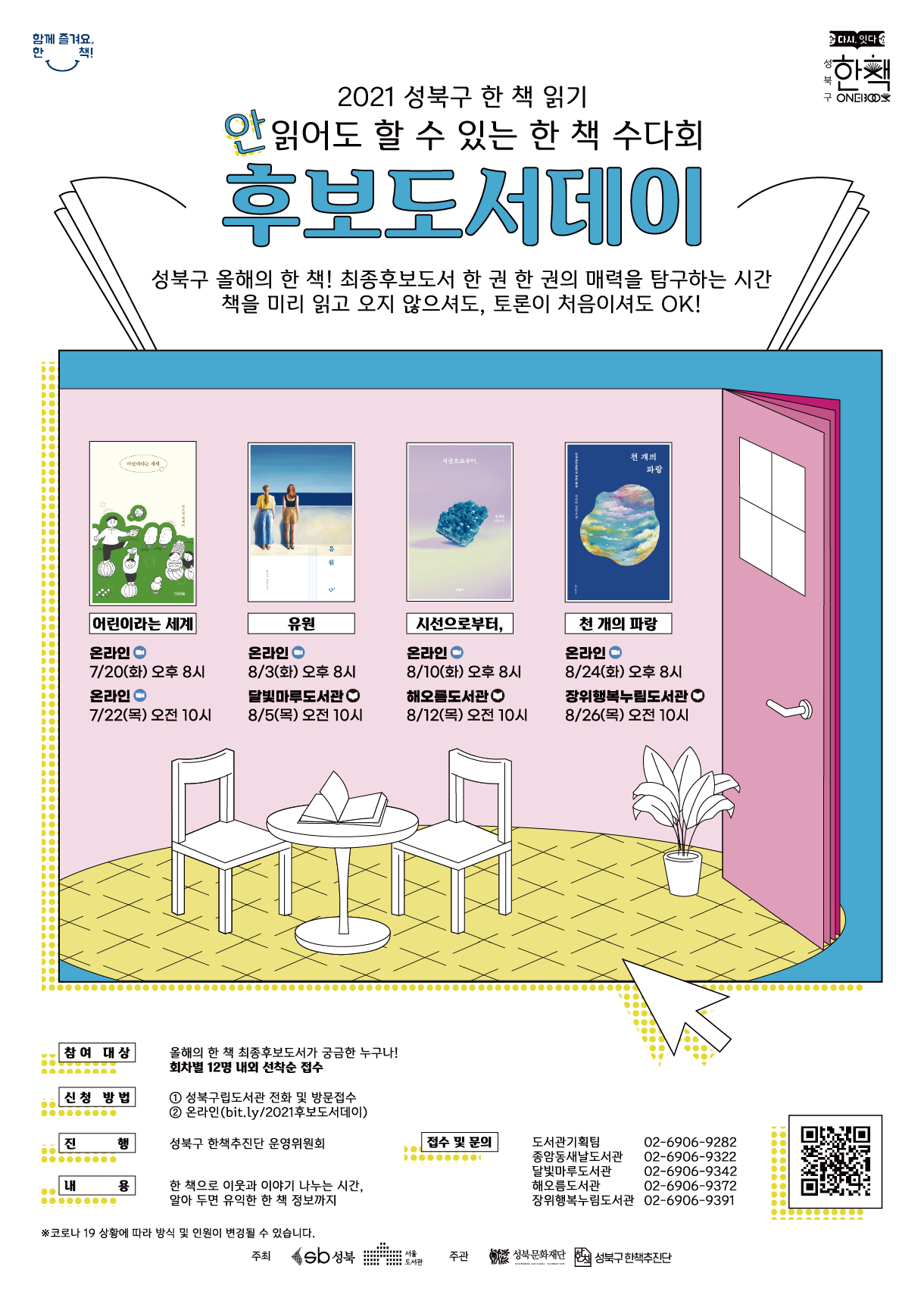 전화 문의 : 02.6906.9282. (성북문화재단 도서관기획팀)