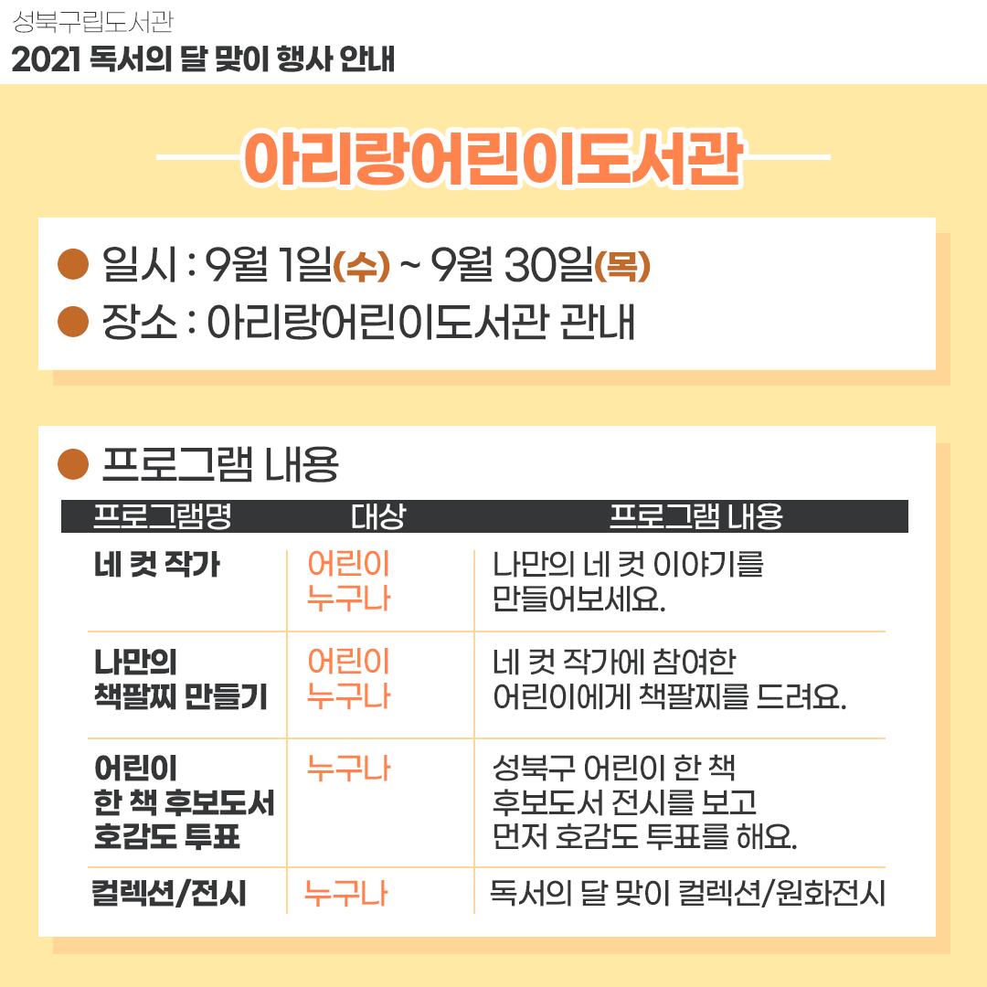 성북구립도서관에서 준비한 다양한 독서의 달 행사를 소개합니다! 😊😊