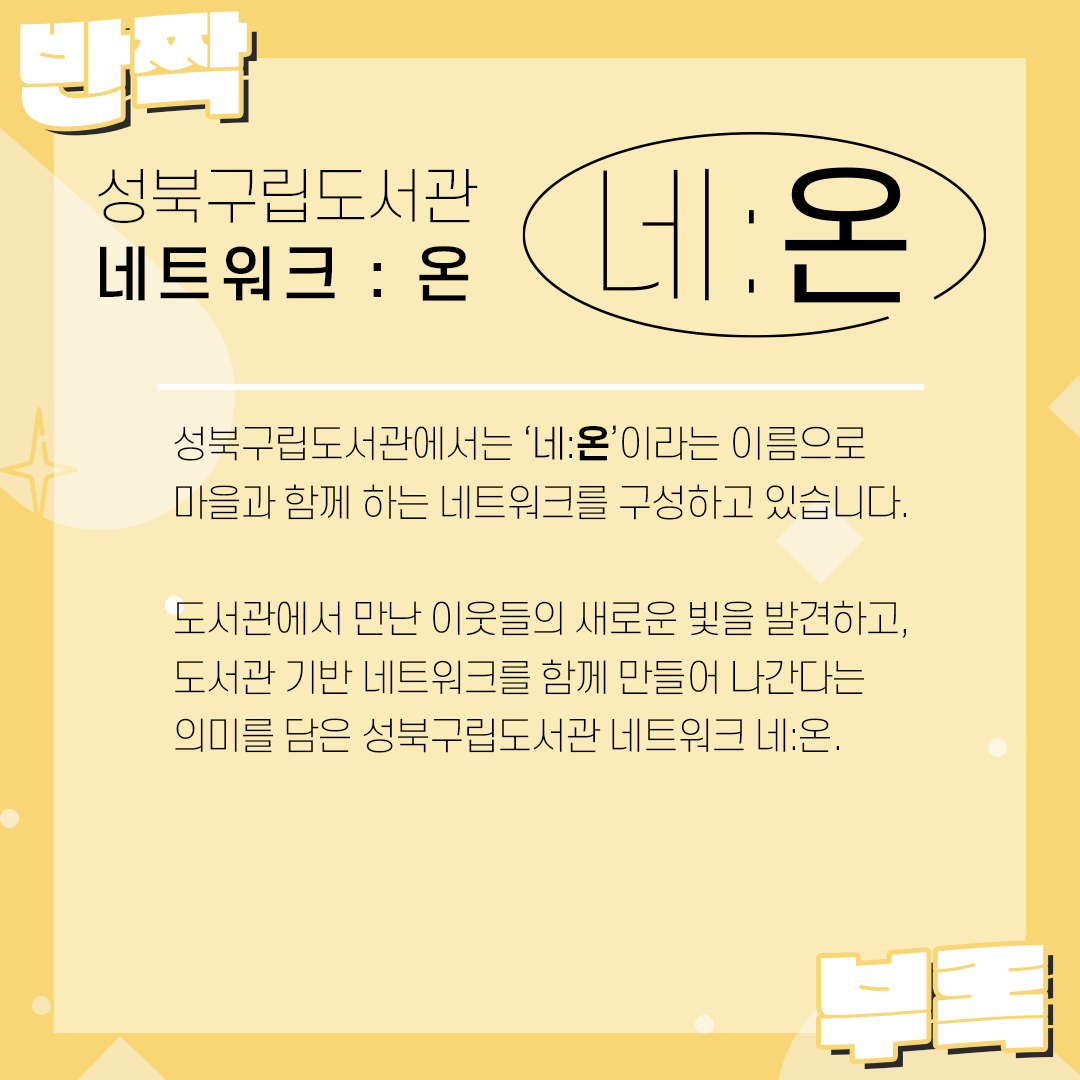 반짝부록 ✨ 성북구립도서관 네:온을 소개합니다! ✨ 003: 석이네 (0) | 2021.10.12 |