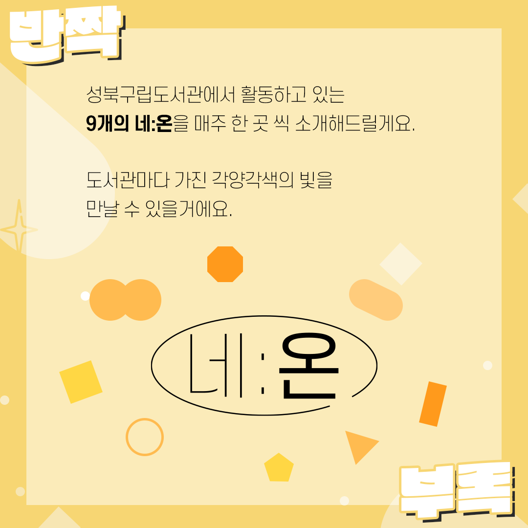 반짝부록 ✨ 성북구립도서관 네:온을 소개합니다! ✨ 002: 정도네 (0) | 2021.10.08 |