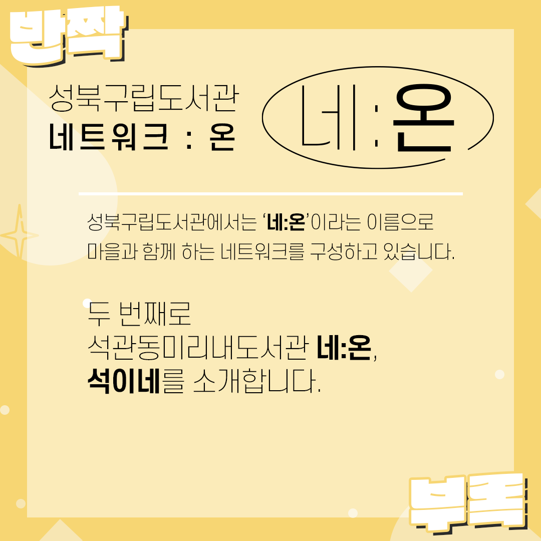 반짝부록 ✨ 성북구립도서관 네:온을 소개합니다! ✨ 001: 프롤로그 (0) | 2021.10.08 |