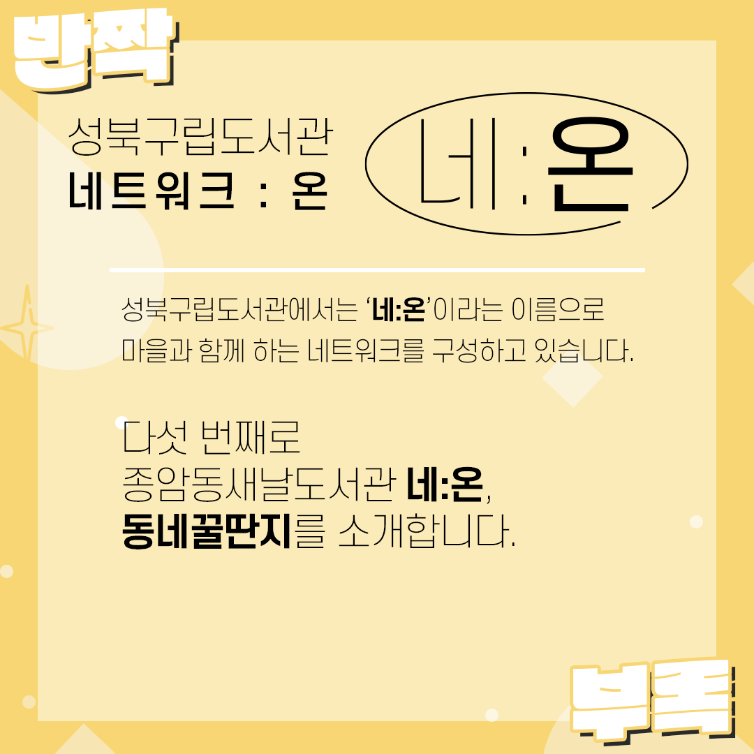 반짝부록 ✨ 성북구립도서관 네:온을 소개합니다! ✨ 003: 석이네 (0) | 2021.10.12 |