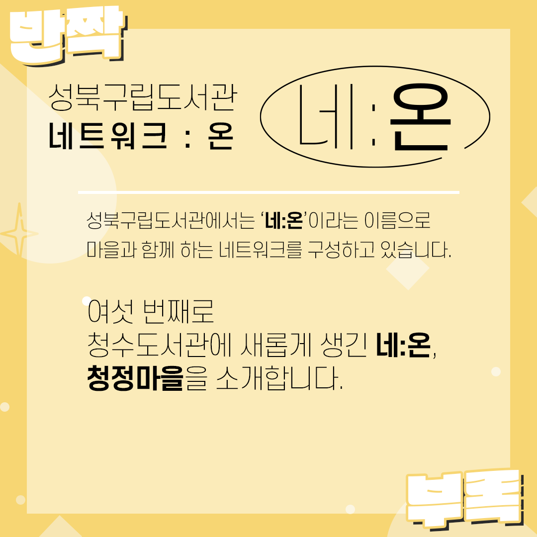 반짝부록 ✨ 성북구립도서관 네:온을 소개합니다! ✨ 006: 동네꿀딴지 (0) | 2021.12.09 |