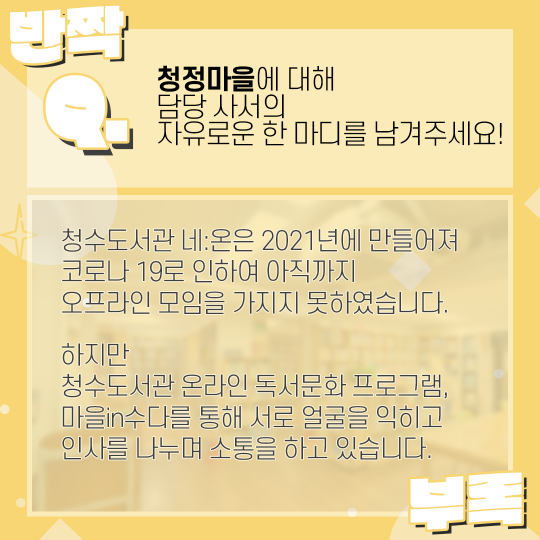 반짝부록 ✨ 성북구립도서관 네:온을 소개합니다! ✨ 008: 히히살롱 (0) | 2021.12.30 |