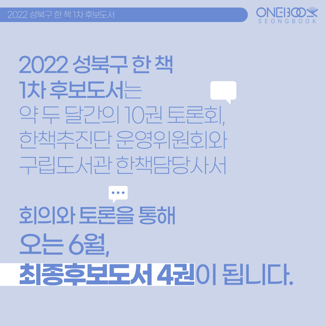 | 2022 성북구 한 책 최종후보도서 4권이 선정되었습니다 ! (0) | 2022.07.05 |