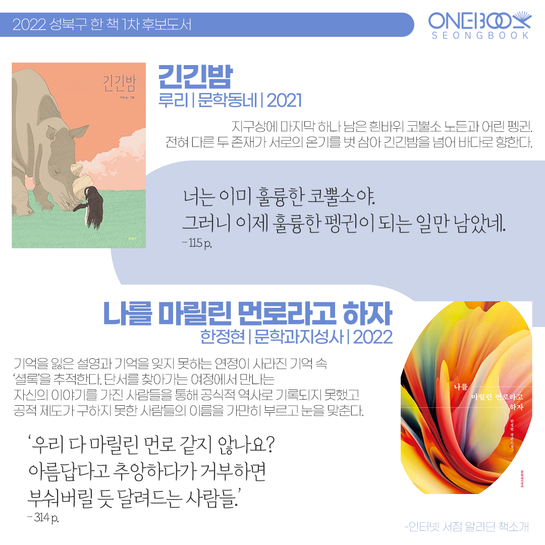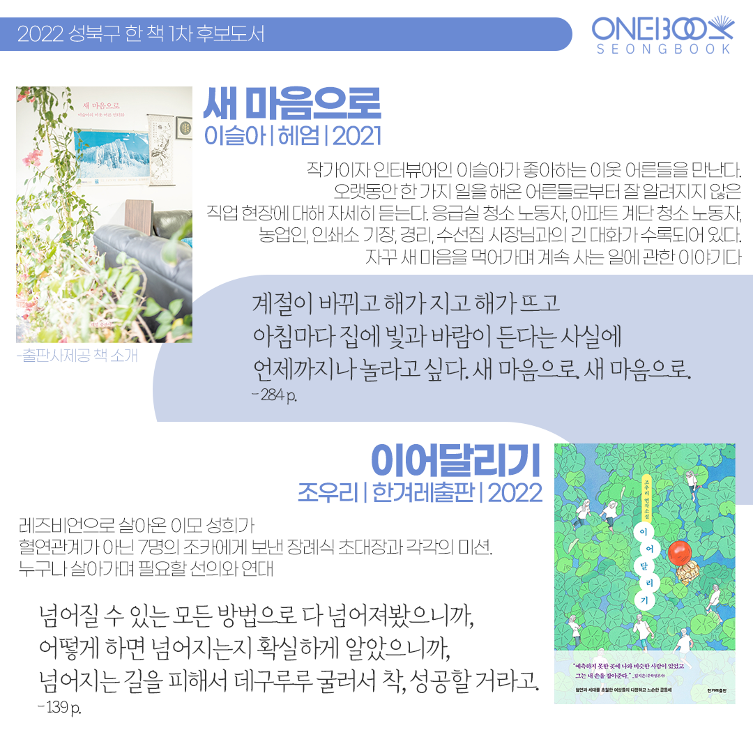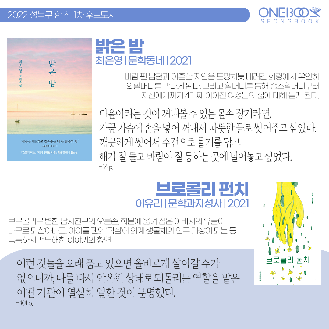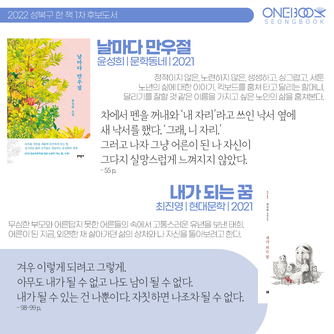 | [원북성북] 2022 성북구 한 책 추천도서 접수 📗 (0) | 2022.03.03 |